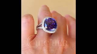 3.8ct Cushion Cut Purple Sapphire Halo Diamond Ring